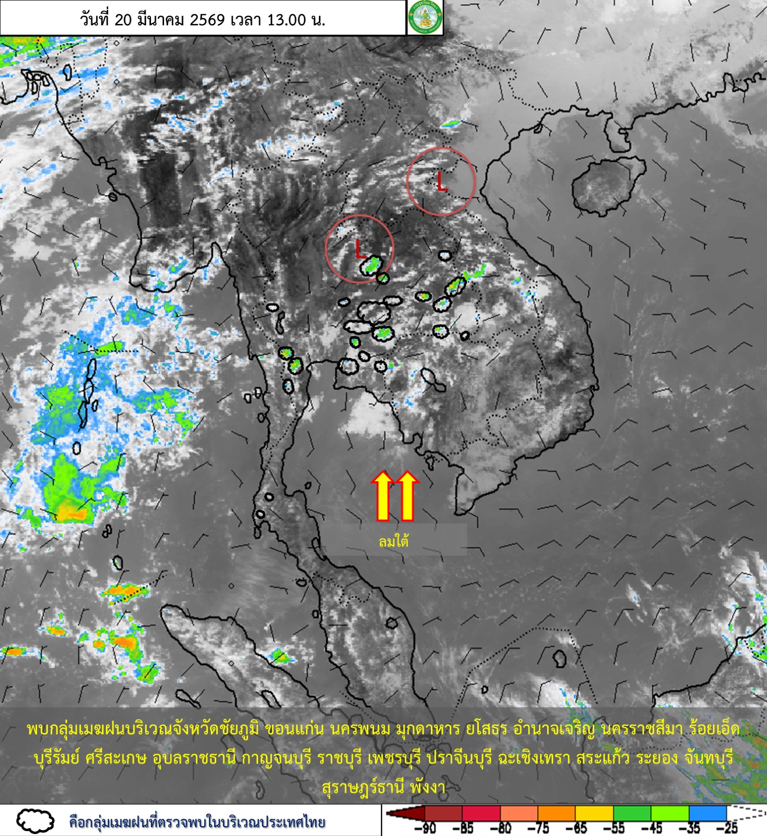 การประมาณค่าฝนจากดาวเทียม เมื่อวาน (19/03/2026)