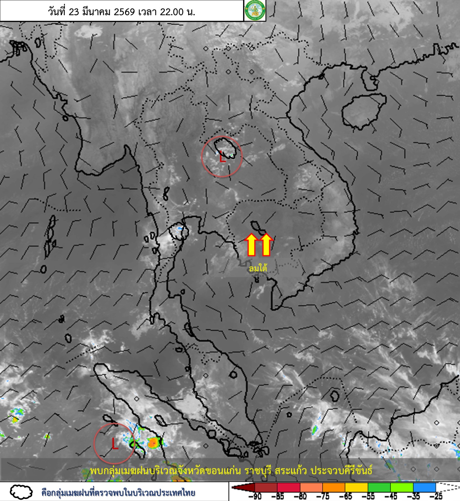 การประมาณค่าฝนจากดาวเทียม เมื่อวาน (23/03/2026)
