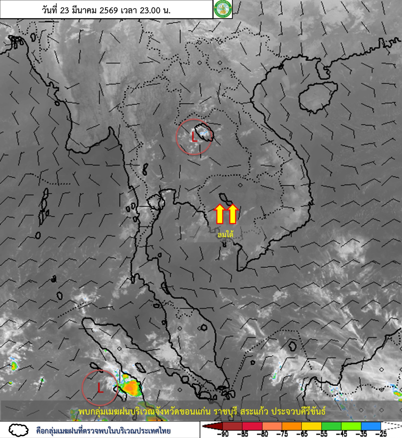การประมาณค่าฝนจากดาวเทียม เมื่อวาน (23/03/2026)