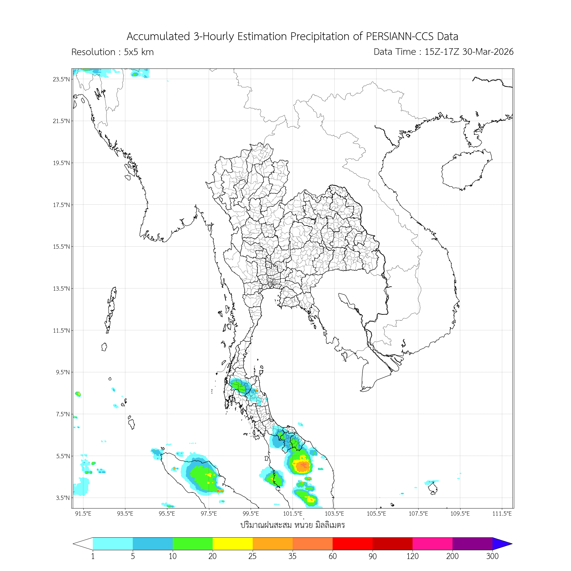 ค่าประมาณฝนสะสม 3 ชั่วโมง จากดาวเทียมอุตุนิยมวิทยา
