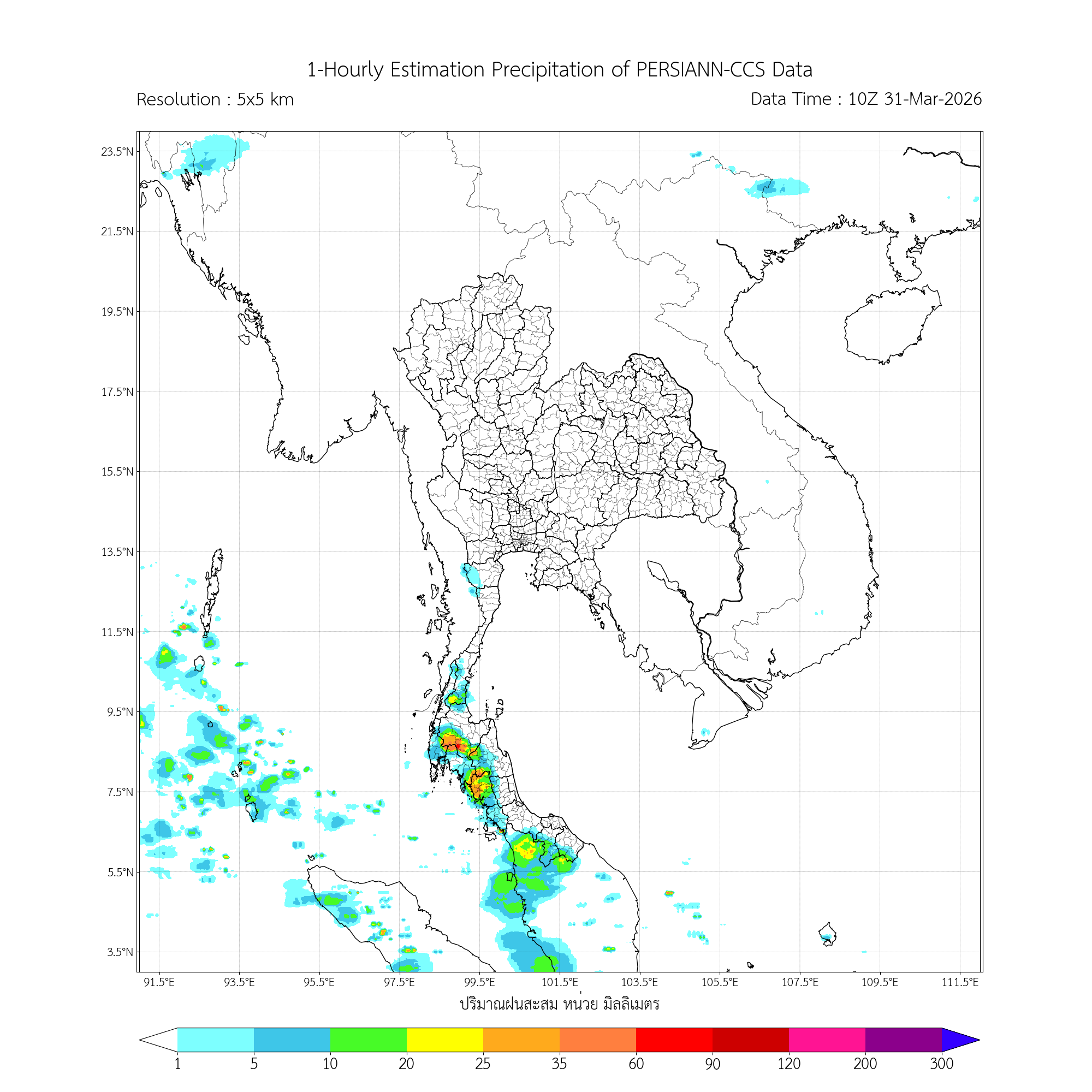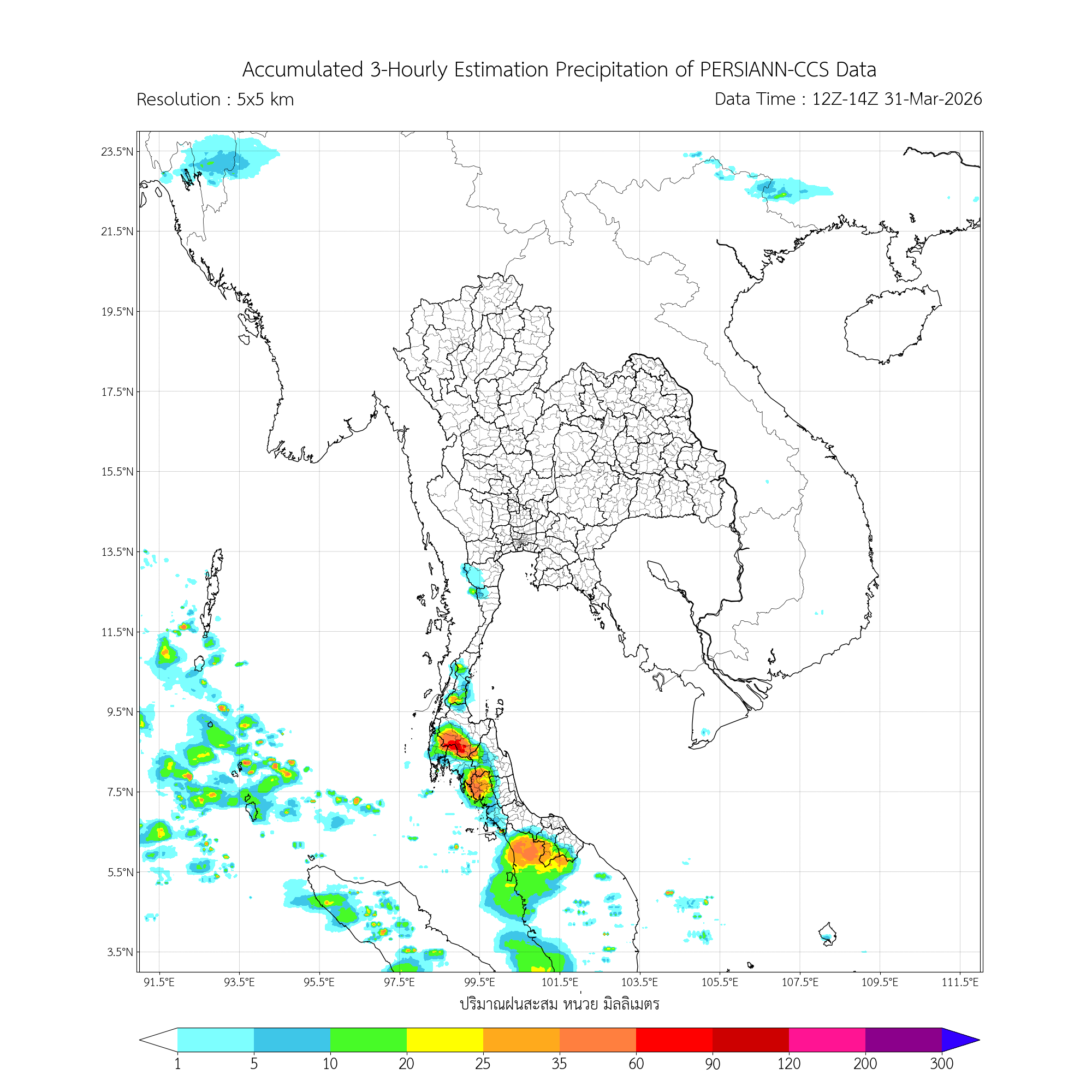 ค่าประมาณฝนสะสม 3 ชั่วโมง จากดาวเทียมอุตุนิยมวิทยา