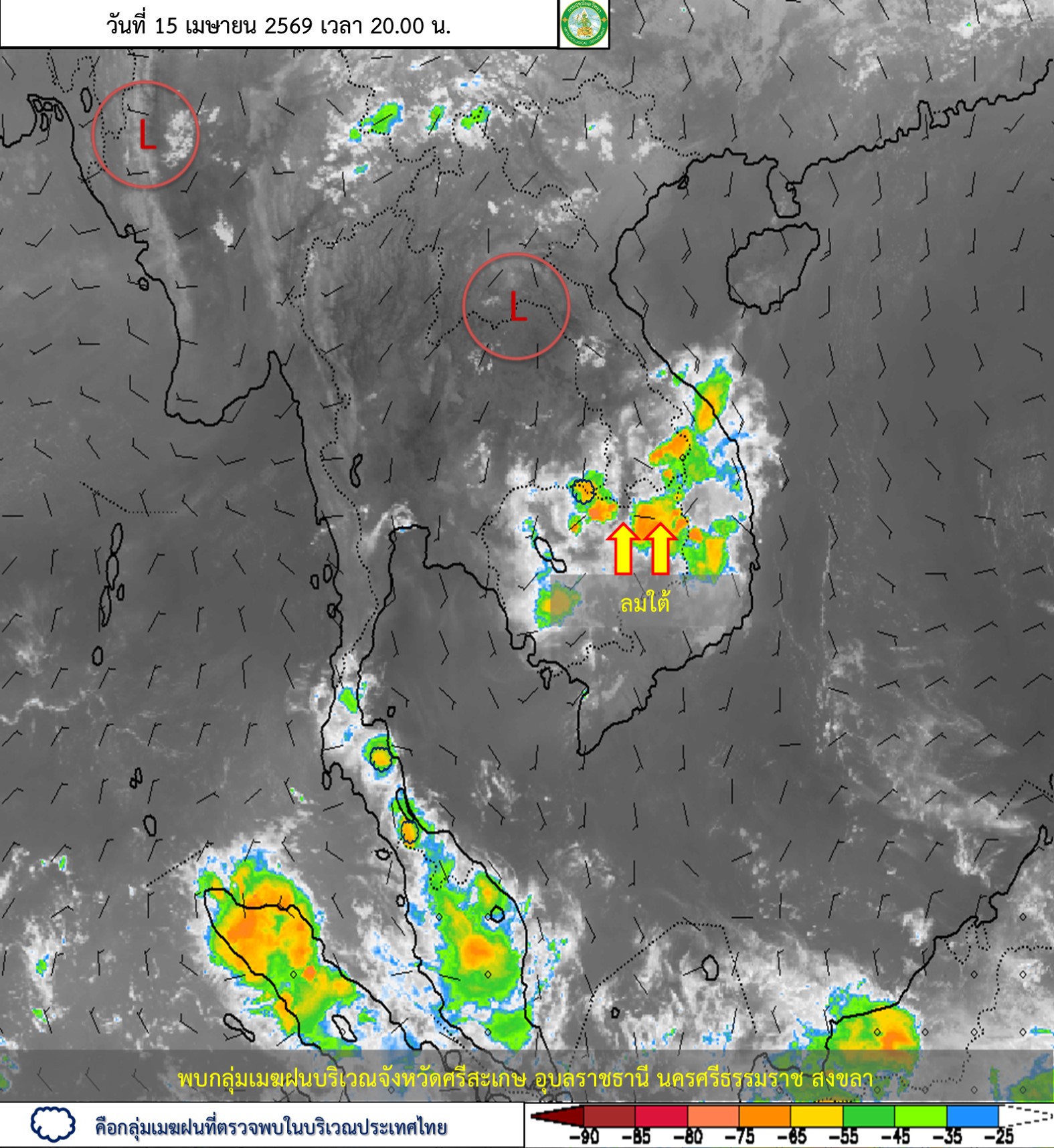 การประมาณค่าฝนจากดาวเทียม เมื่อวาน (15/04/2026)