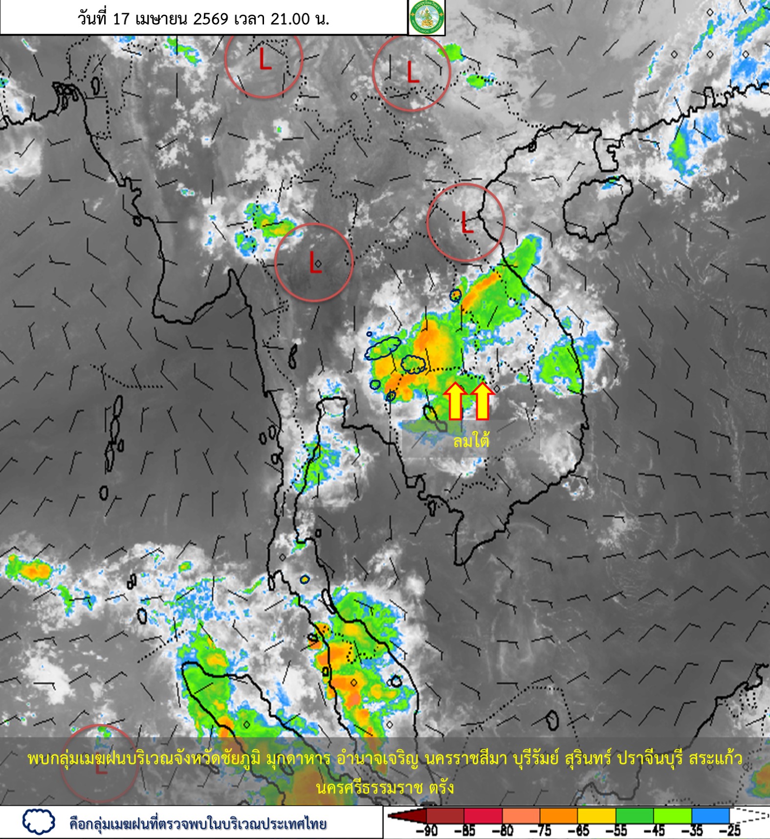 การประมาณค่าฝนจากดาวเทียม เมื่อวาน (16/04/2026)