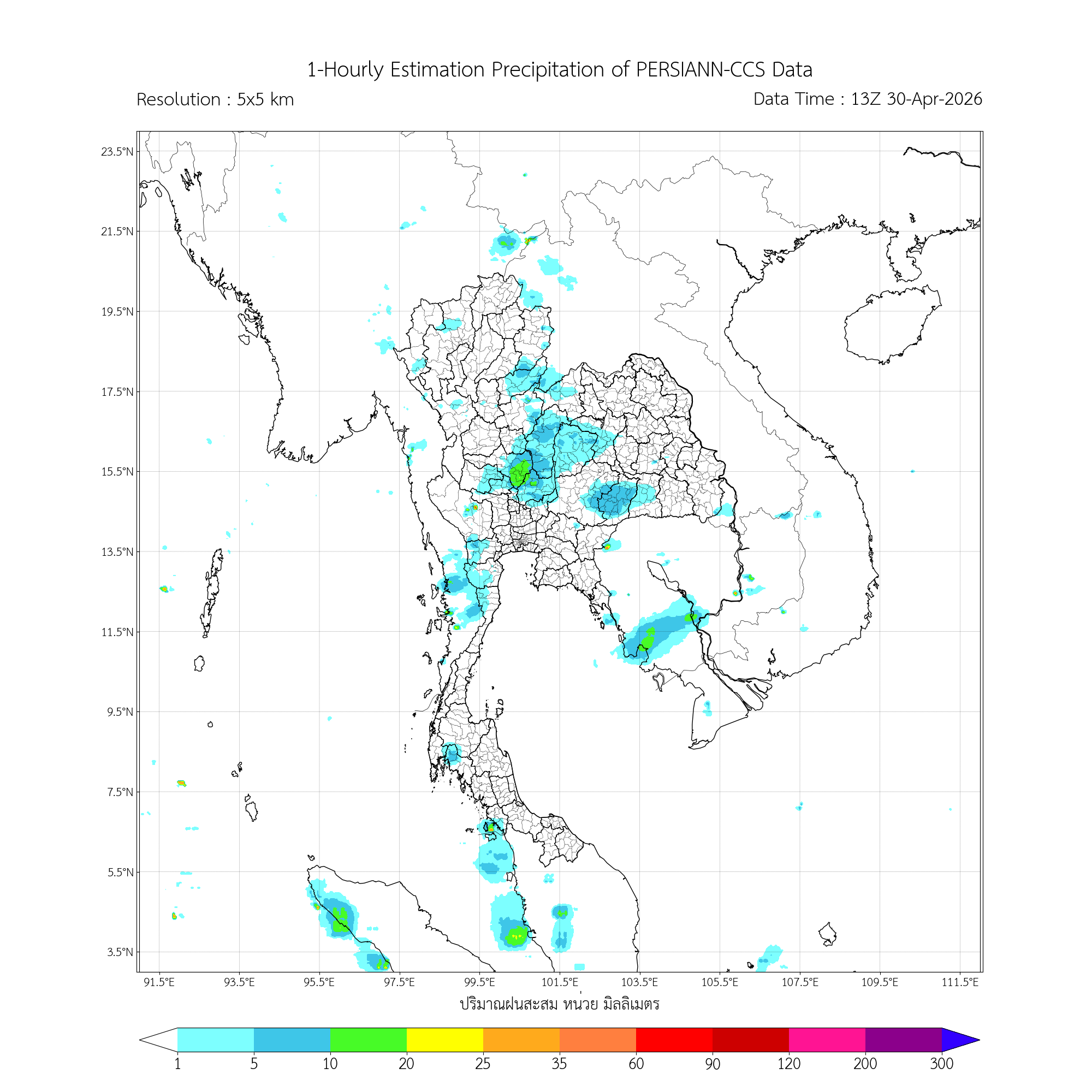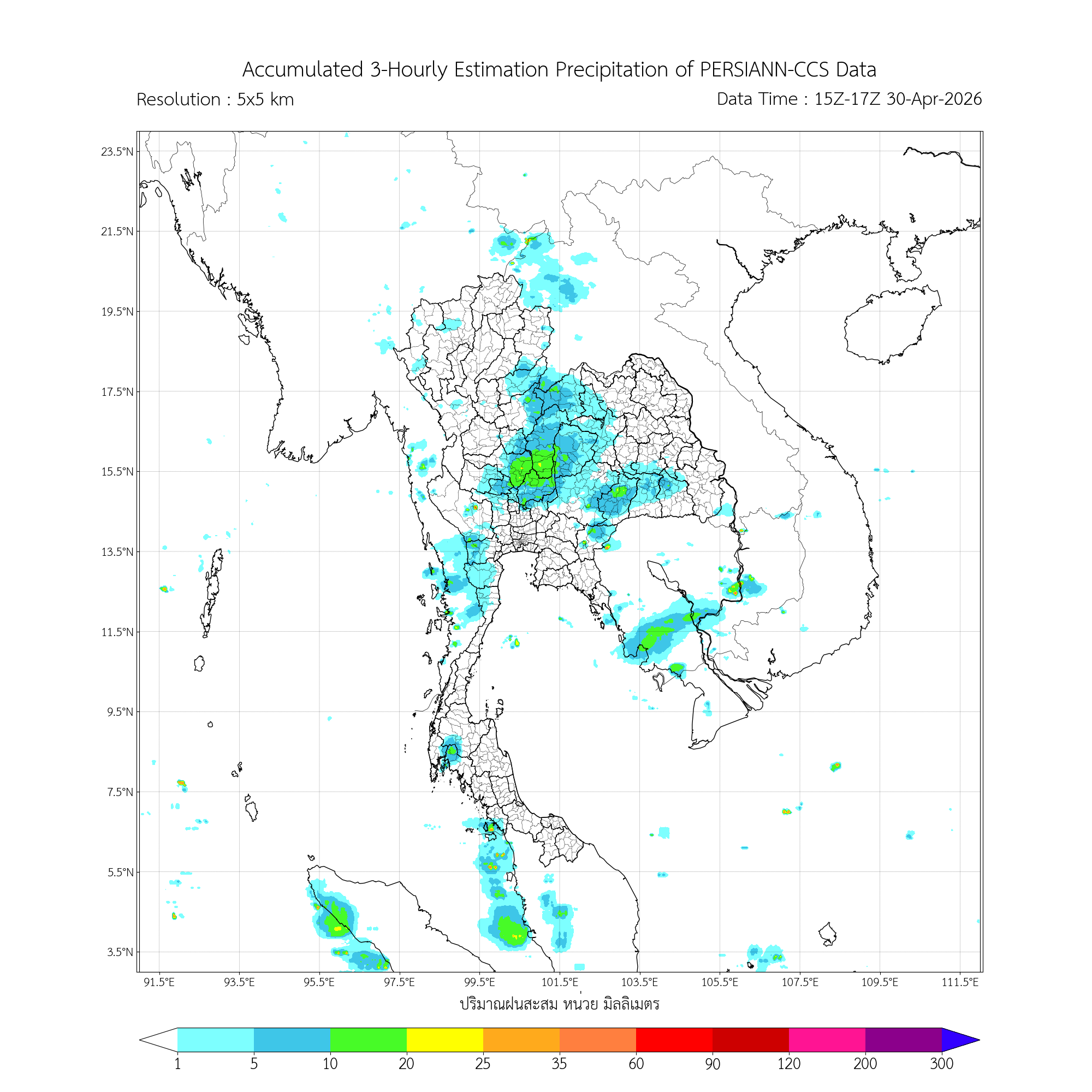 ค่าประมาณฝนสะสม 3 ชั่วโมง จากดาวเทียมอุตุนิยมวิทยา