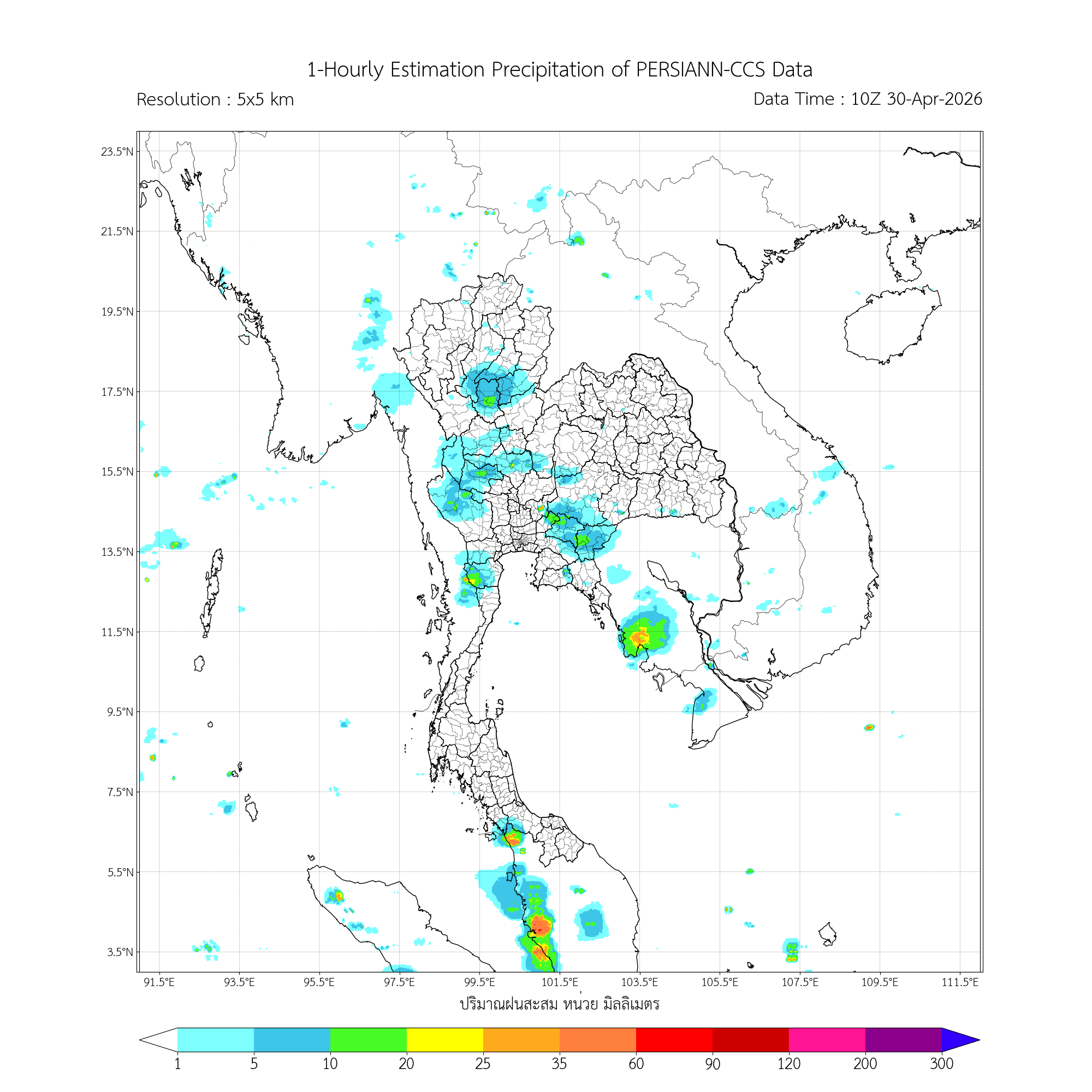 ค่าประมาณฝนสะสม 3 ชั่วโมง จากดาวเทียมอุตุนิยมวิทยา