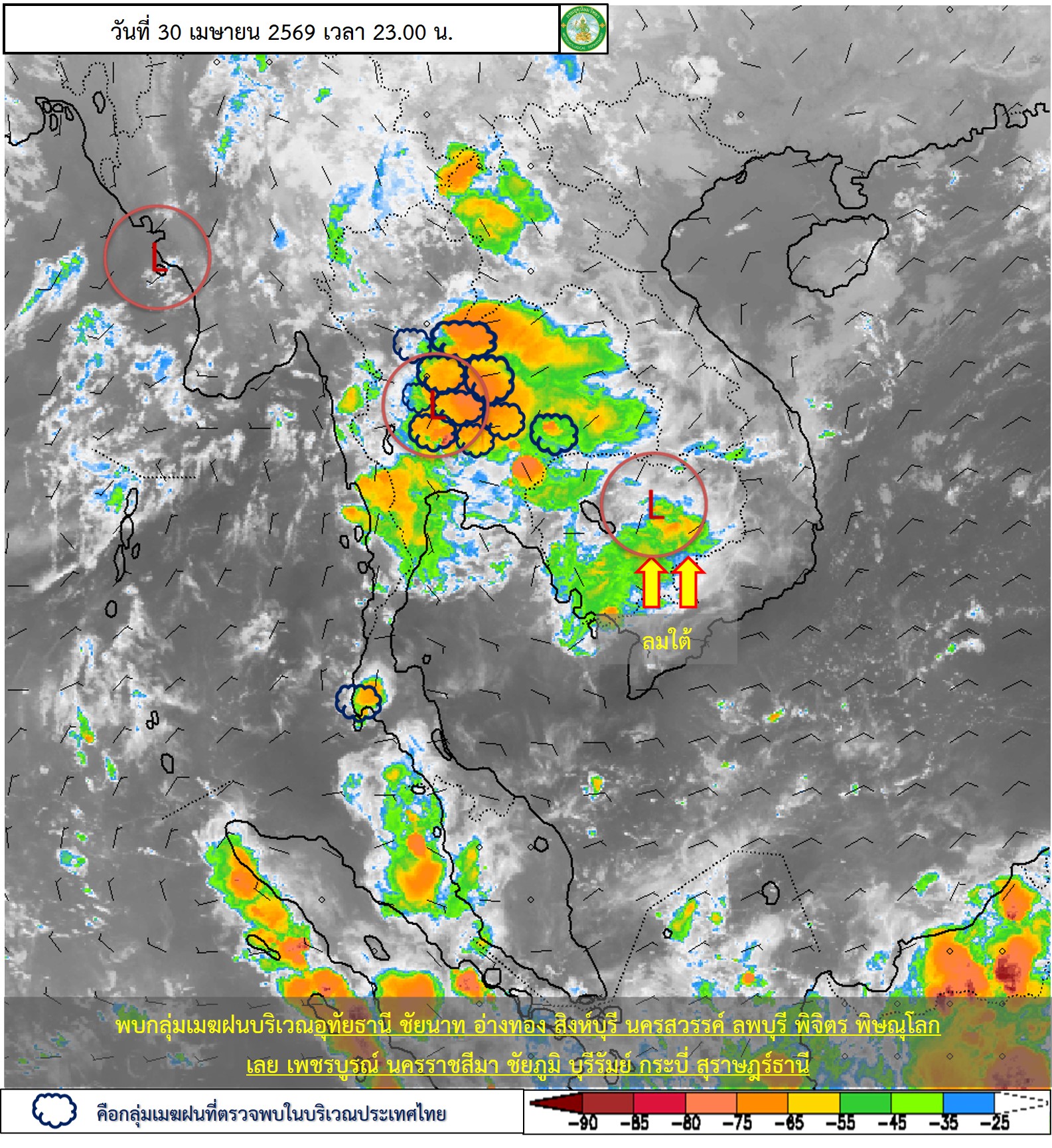 การประมาณค่าฝนจากดาวเทียม เมื่อวาน (30/04/2026)